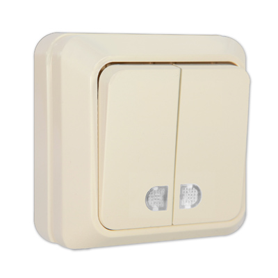 Выключатель Олимп 2кл. подсветка слоновая кость (10/100)