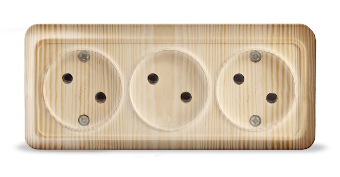 Розетка Олимп 3-ая без заземления сосна (5/100)