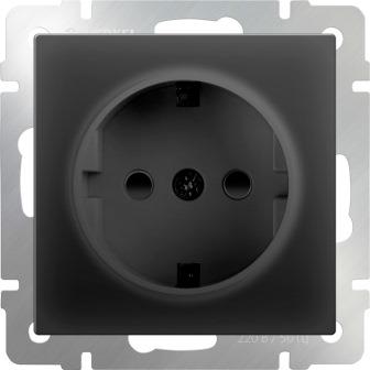 Механизм розетки Werkel 1-ая с заземлением шторки чёрный матовый (10)