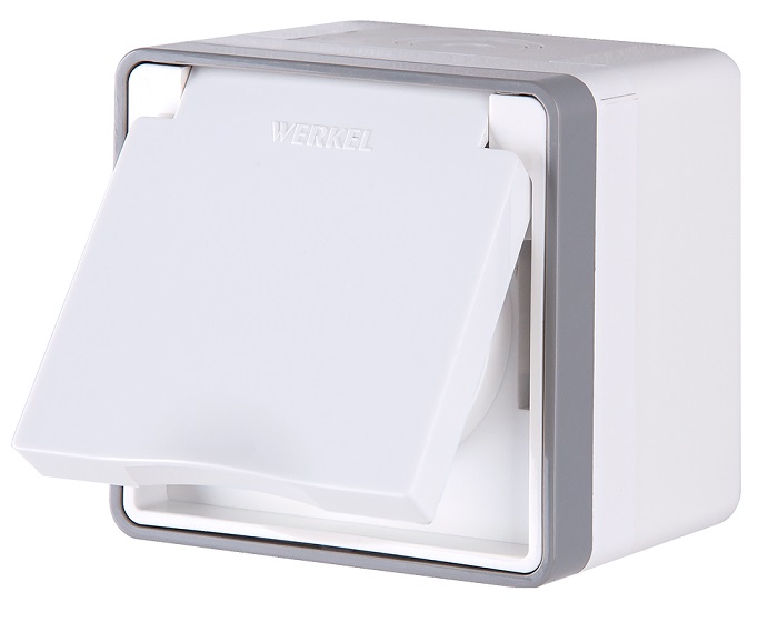 Розетка Werkel Gallant 1-ая с заземлением IP44 крышка белый (10)