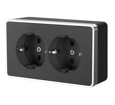 Розетка Werkel Gallant 2-ая с заземлением черный/хром (5)