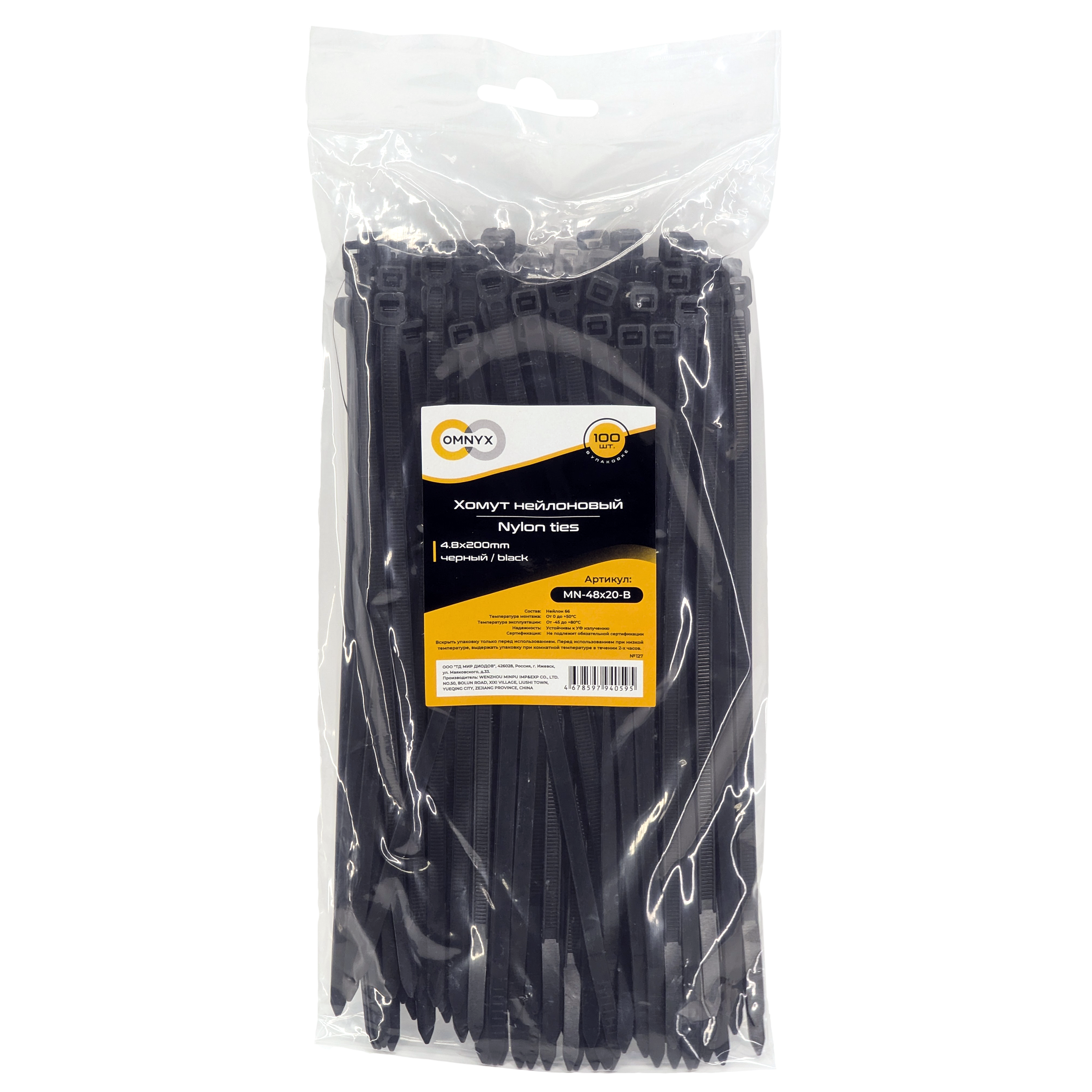 Хомут нейлоновый 4.8x200 черный 100шт Omnyx (140)
