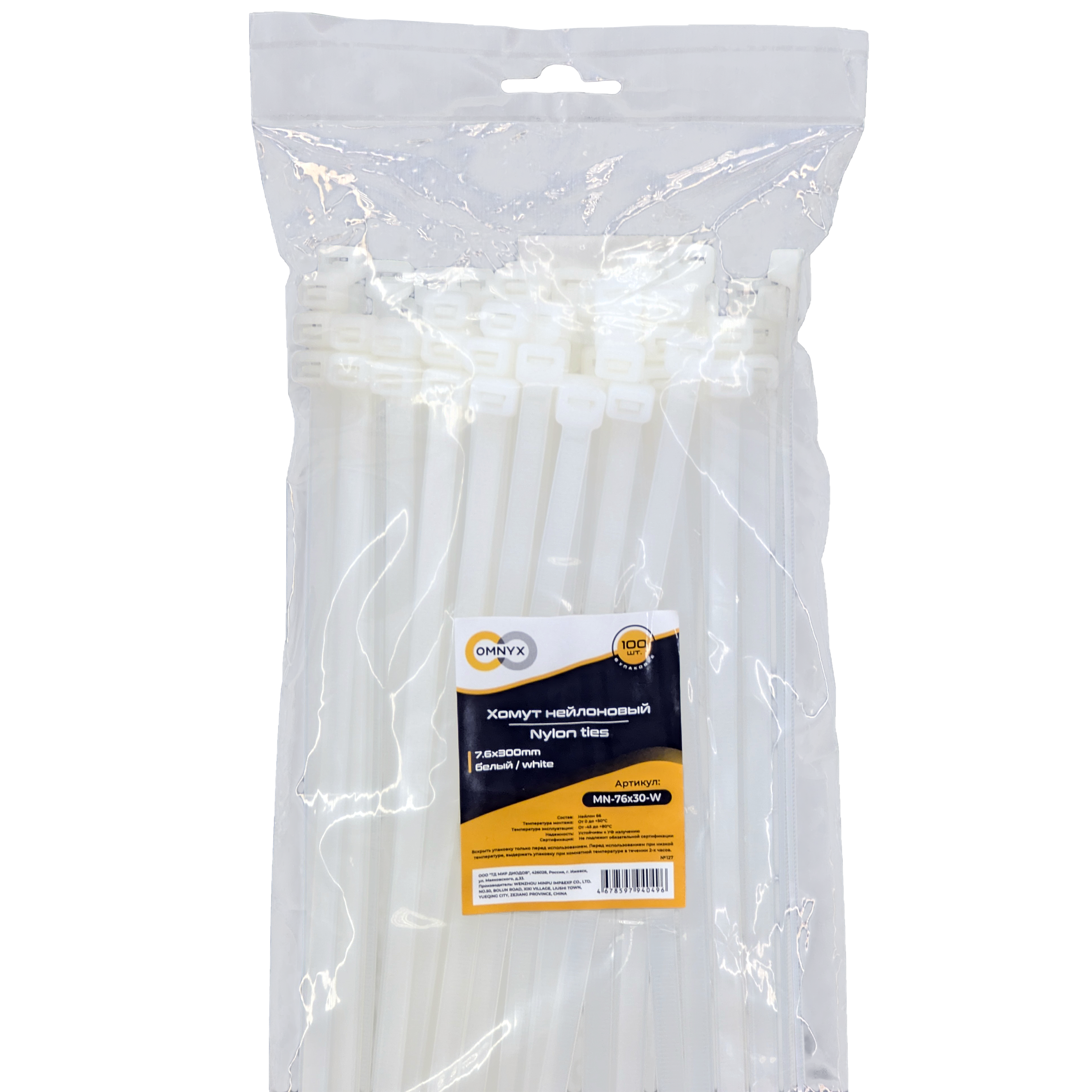 Хомут нейлоновый 7.6x300 белый 100шт Omnyx (55)