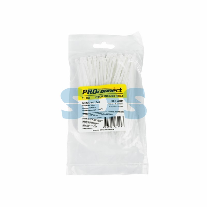 Хомут 2.5x100 белый 100шт Proconnect (10)