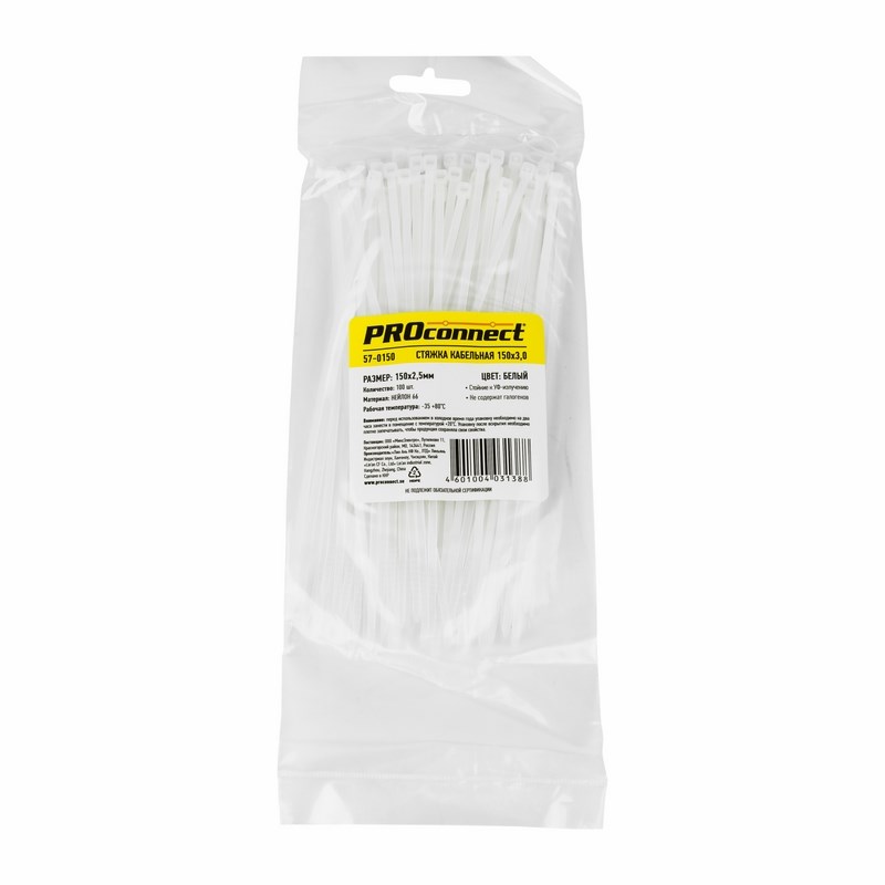 Хомут 2.5x150 белый 100шт Proconnect (10)