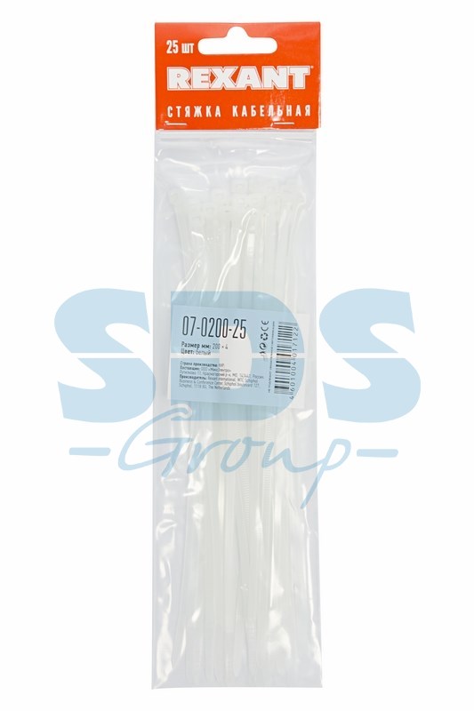 Хомут 3.6x200 белый 25шт Rexant (10)