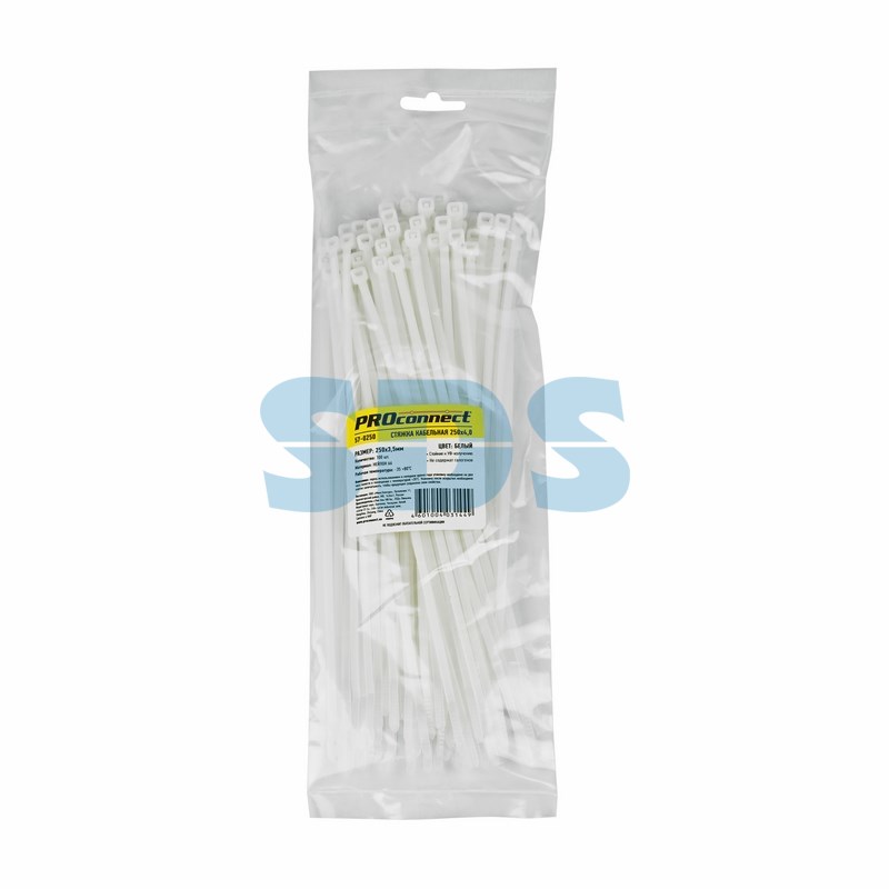 Хомут 3.6x250 белый 100шт Proconnect (10)
