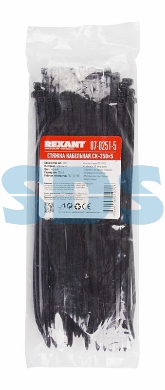 Хомут 4.8x250 черный 100шт Rexant (10)