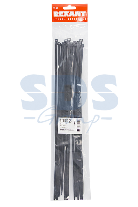 Хомут 4.8x400 черный 25шт Rexant (10)