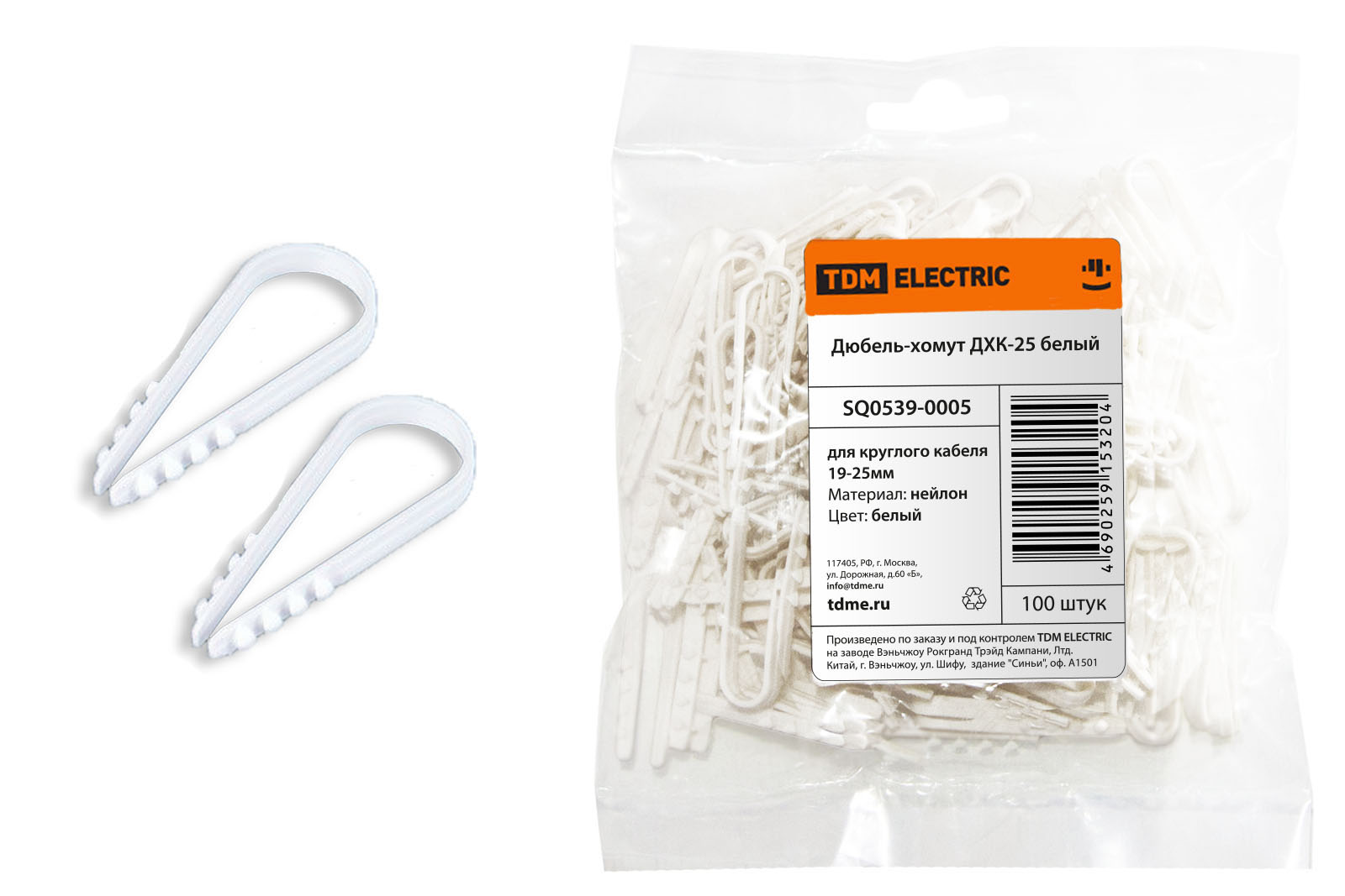 Дюбель-хомут 19-25 белый 100шт TDM ДХК-25 (10)