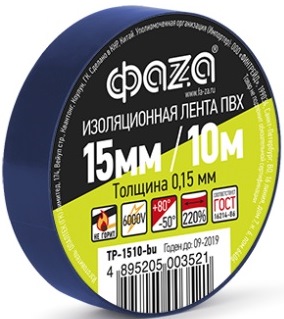 Изолента Фаzа 15мм х 10м синий (10/200)