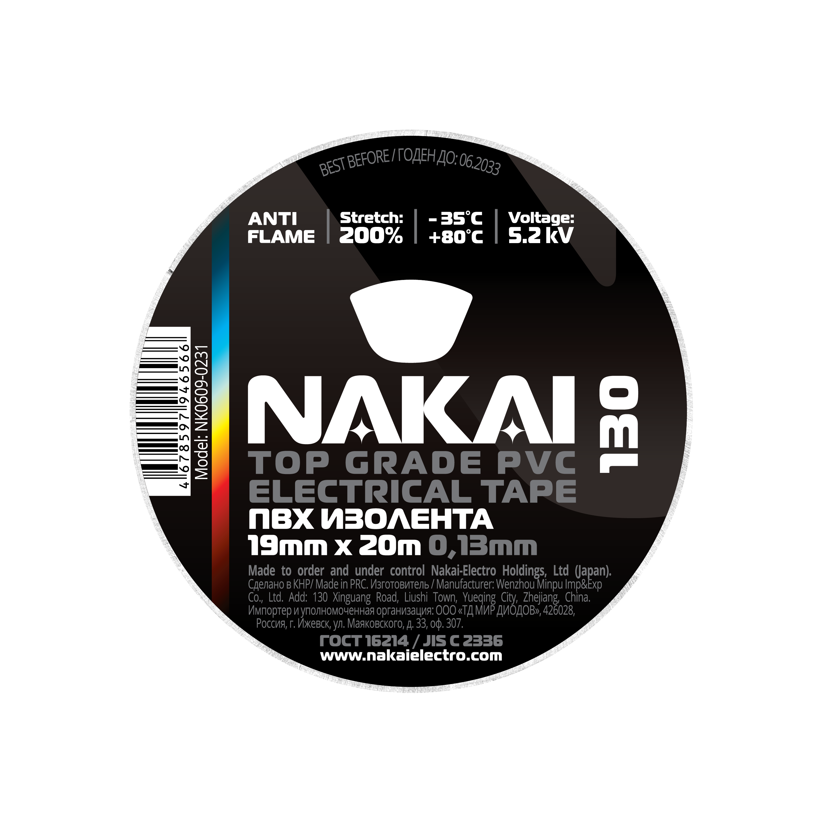 Изолента NAKAI 130 ПВХ 19мм х 20м белый (10/250)