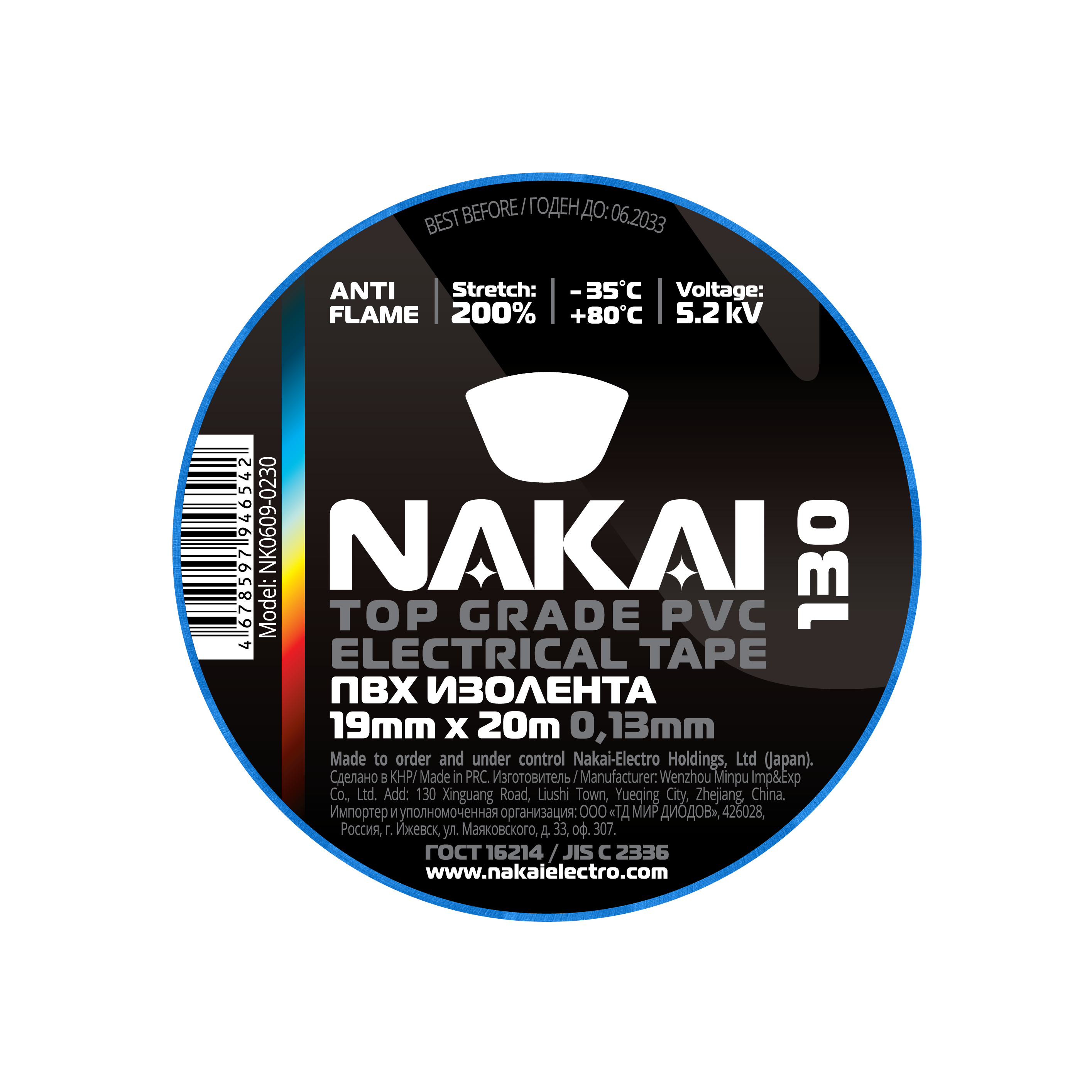 Изолента NAKAI 130 ПВХ 19мм х 20м синий (10/250)