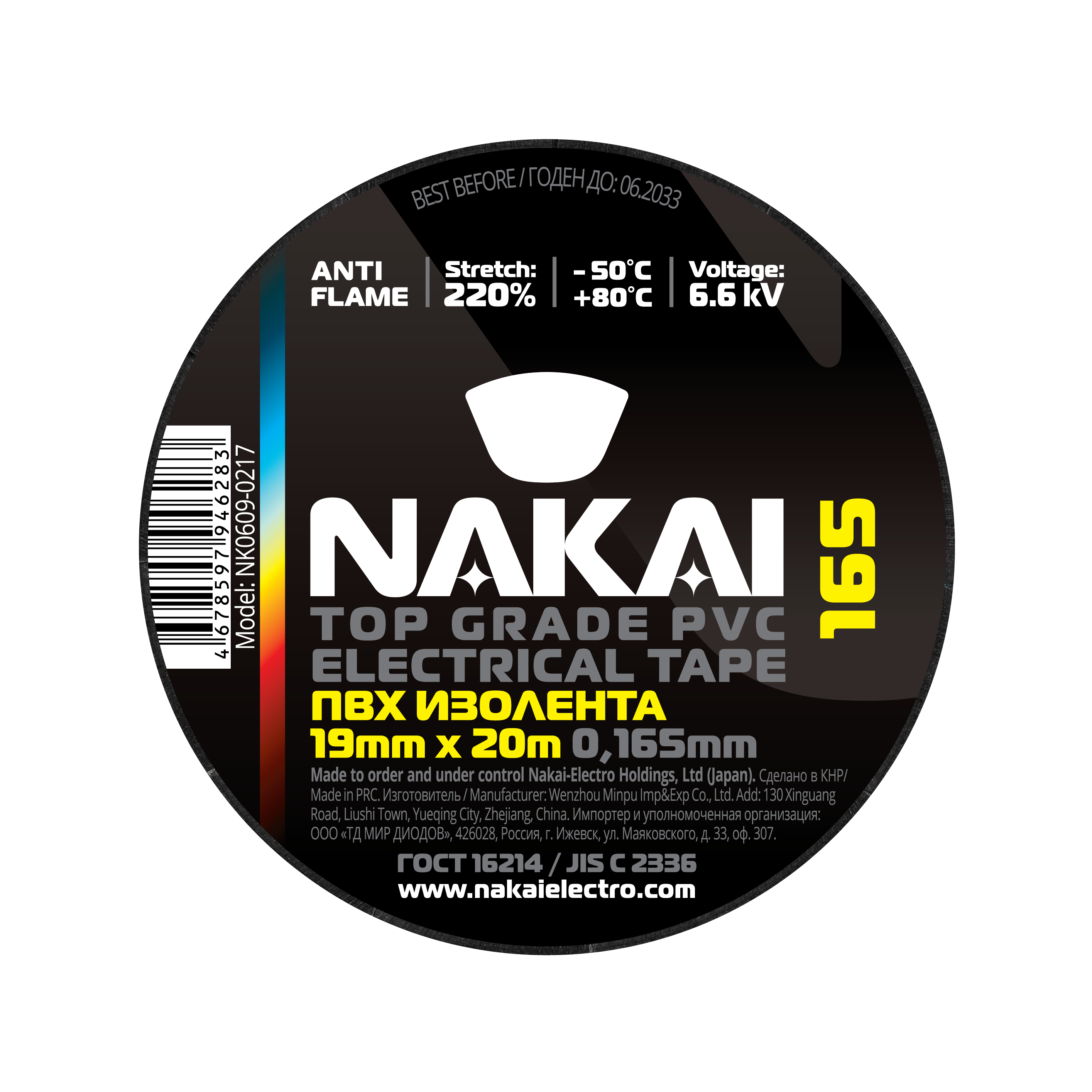 Изолента NAKAI 165 ПВХ 19мм х 20м черный (10/200)
