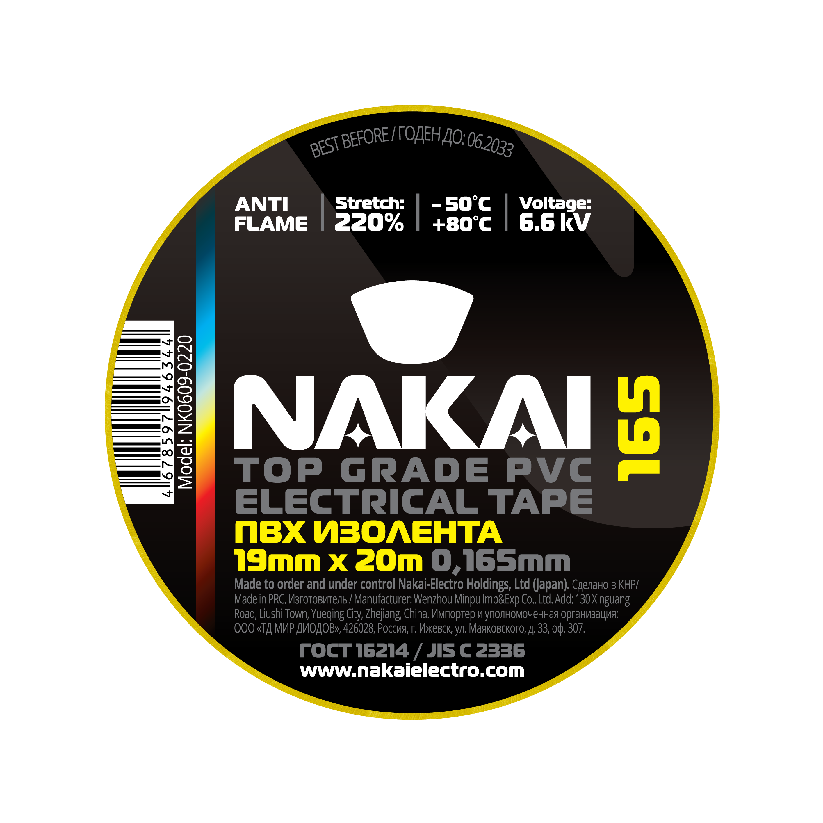 Изолента NAKAI 165 ПВХ 19мм х 20м желтый (10/200)