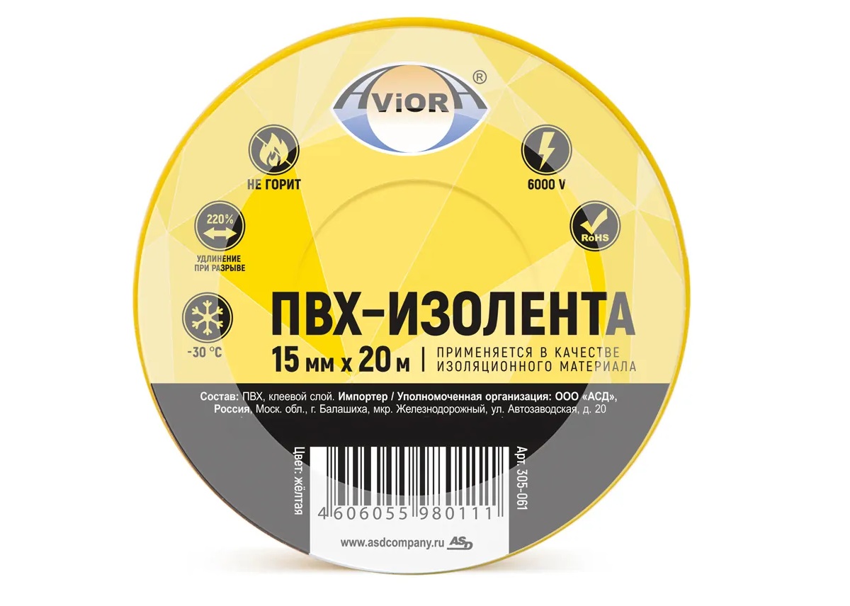Изолента Aviora 15мм х 20м желто-зеленый (10/100)