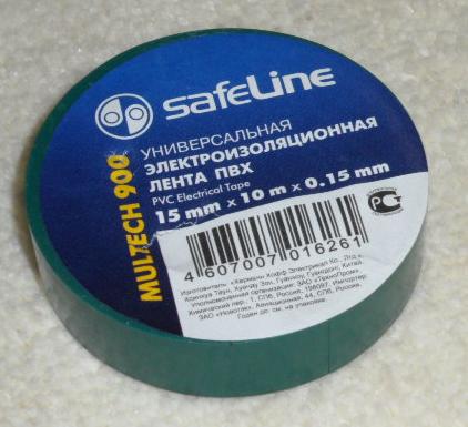 Изолента Safeline 15мм х 10м зеленый (10/250)