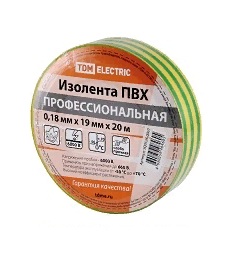 Изолента TDM профессиональная 19мм х 20м желто-зеленая (10/200)