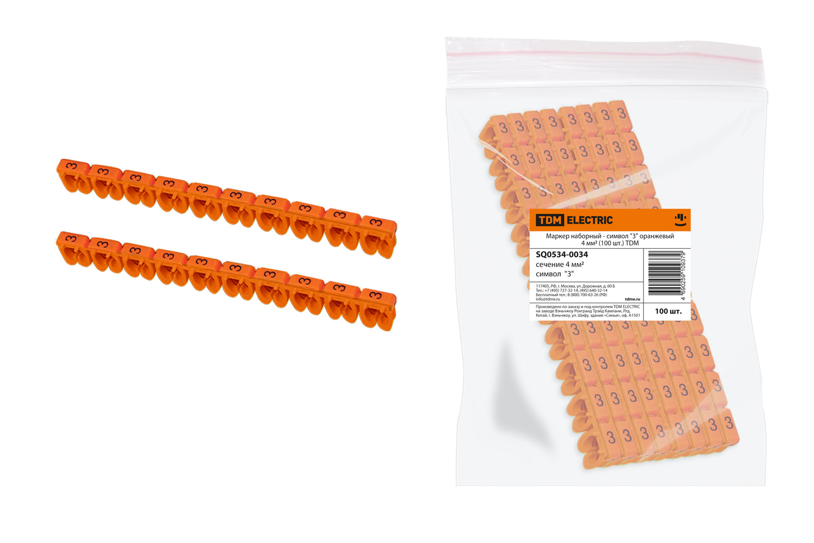 Маркер наборный "3" оранжевый 4 мм2 (100шт.) (10)