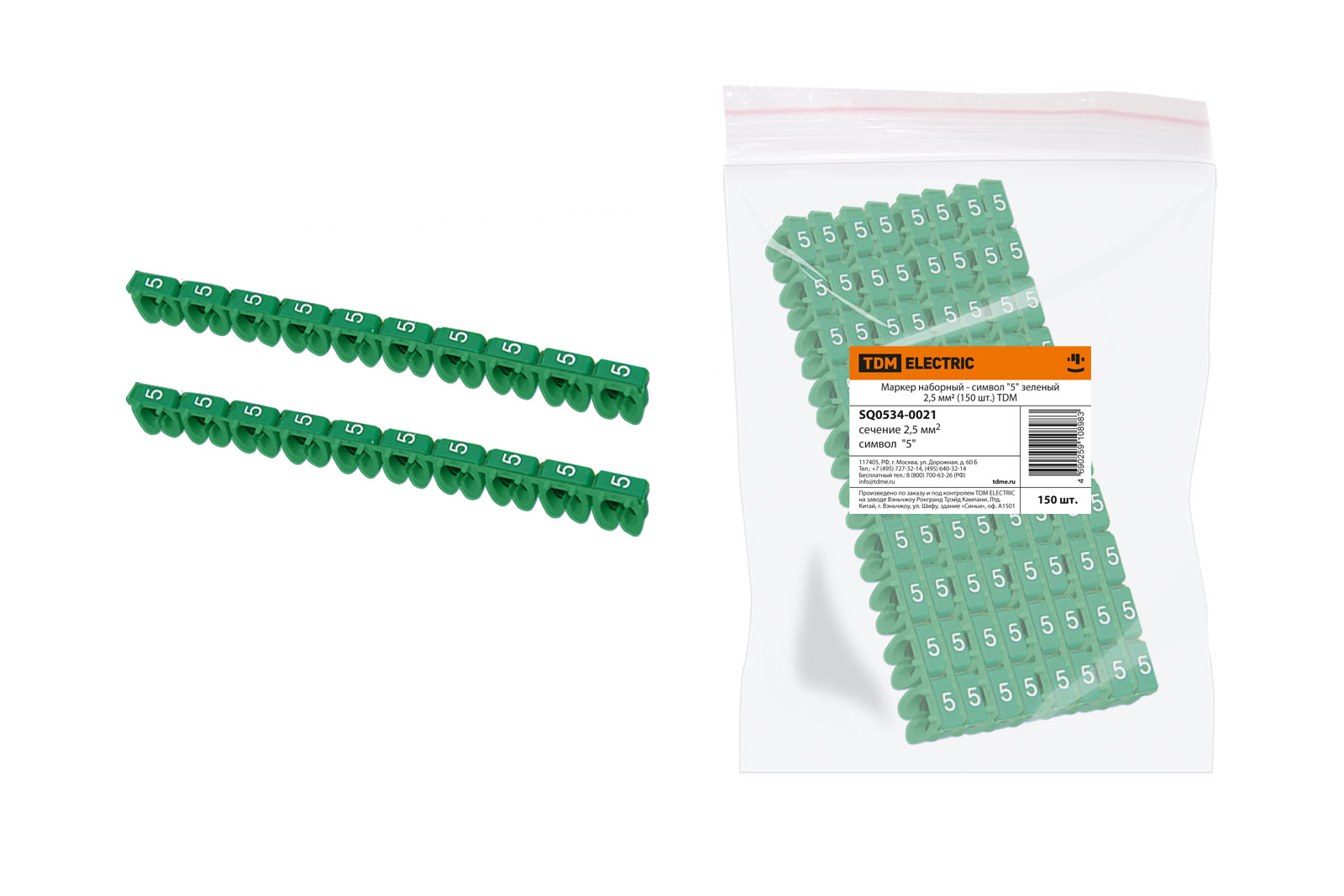 Маркер наборный "5" зеленый 2,5 мм2 (150шт.) (10)
