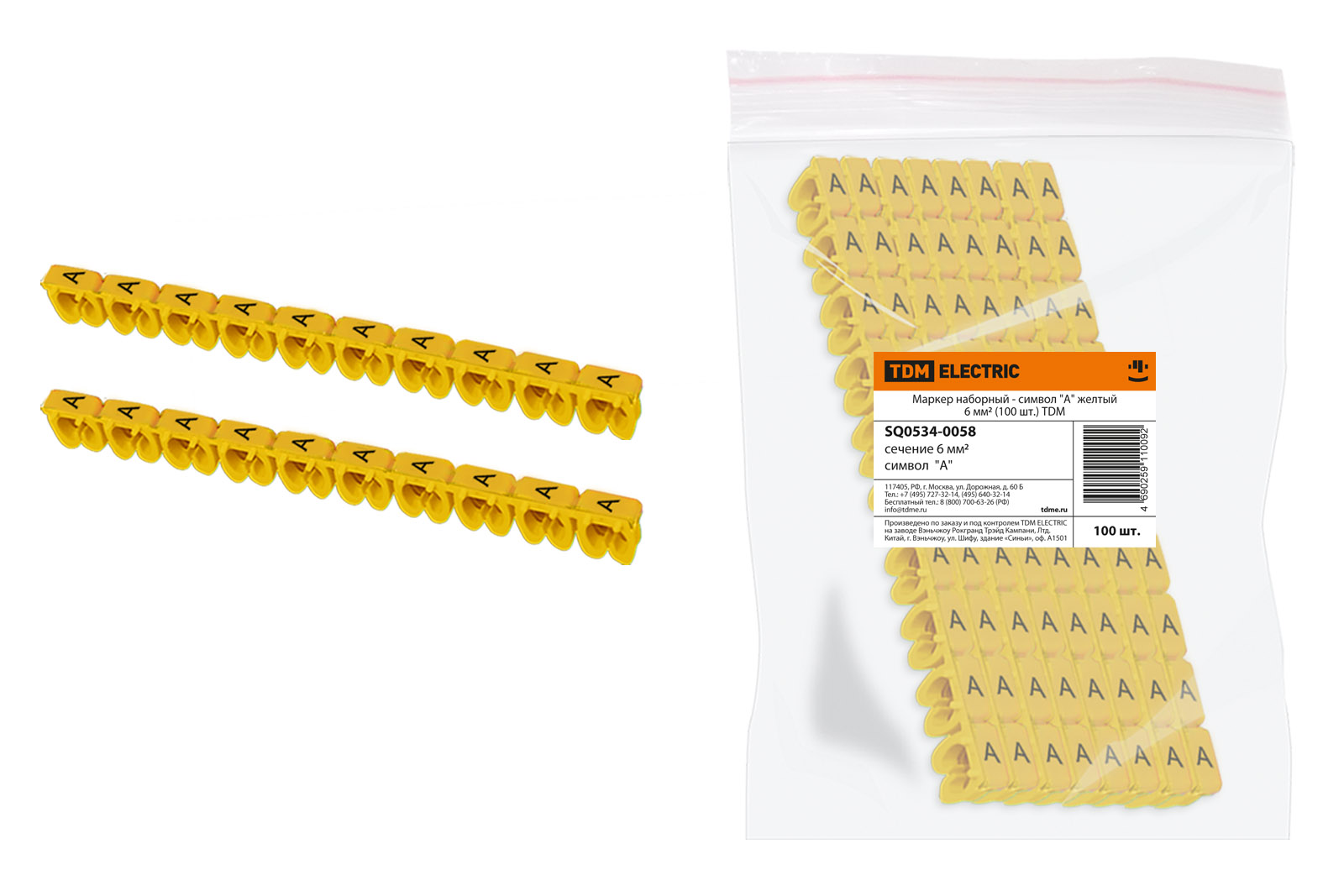 Маркер наборный - символ "A" желтый 6 мм2 (100 шт.) TDM