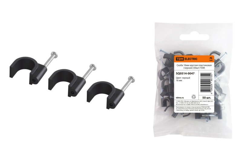 Скоба TDM круглая D 16мм 50шт черная (20)