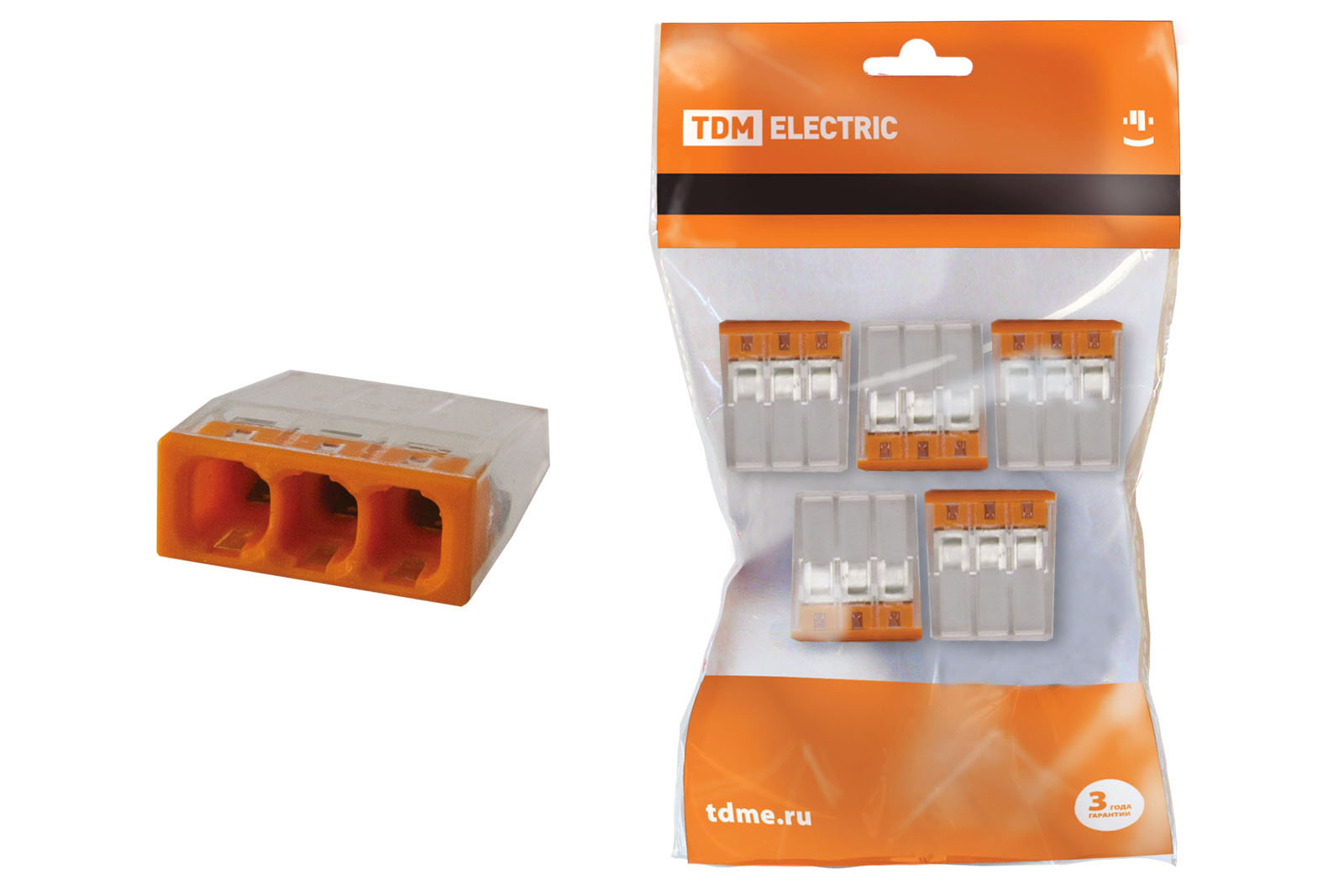 Зажим безвинтовой 3x(1-2.5мм²) TDM 5шт (20)