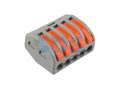 Соединительная многоразовая клемма REXANT на 5 проводников с плоско-пружинным зажимом предназначена для подсоединения медных одножильных и многожильных зачищенных проводников тонкого сечения.