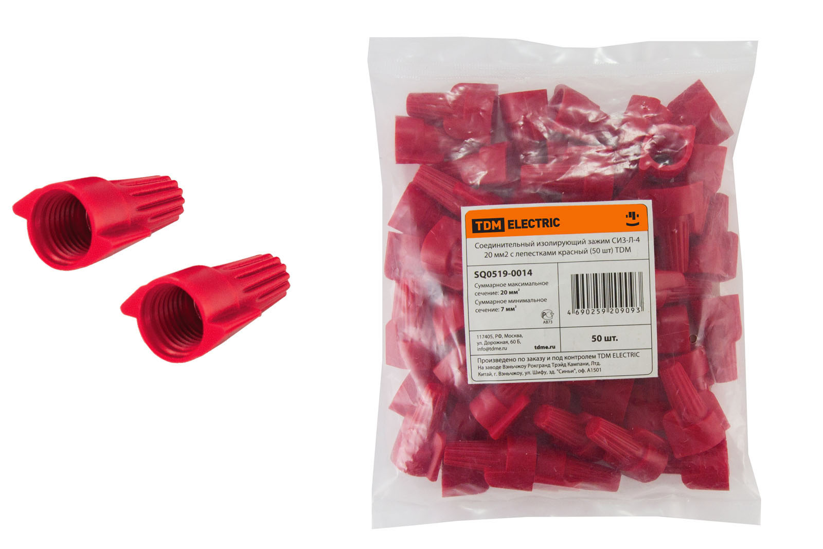 Соединительный изолирующий зажим 20мм² с лепестками красный СИЗ-Л-4 TDM 50шт (10)