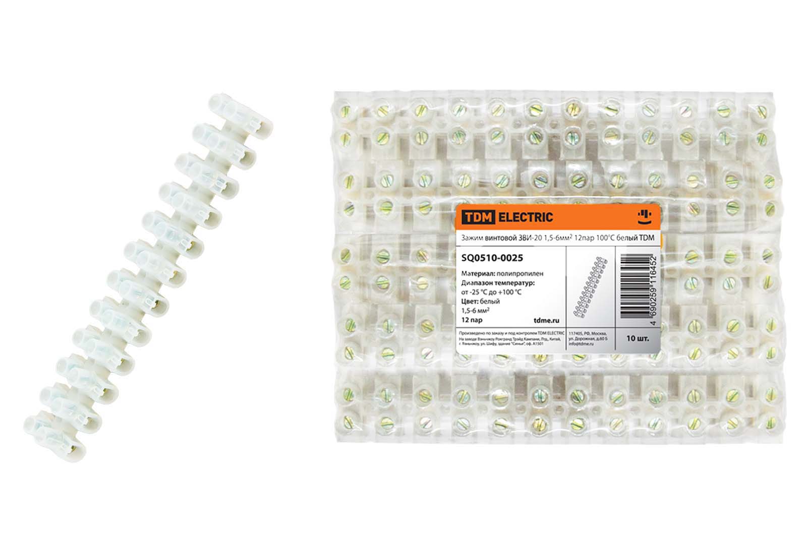 Колодка клеммная 20А 1.5-6мм² полипропилен TDM ЗВИ-20 (10)