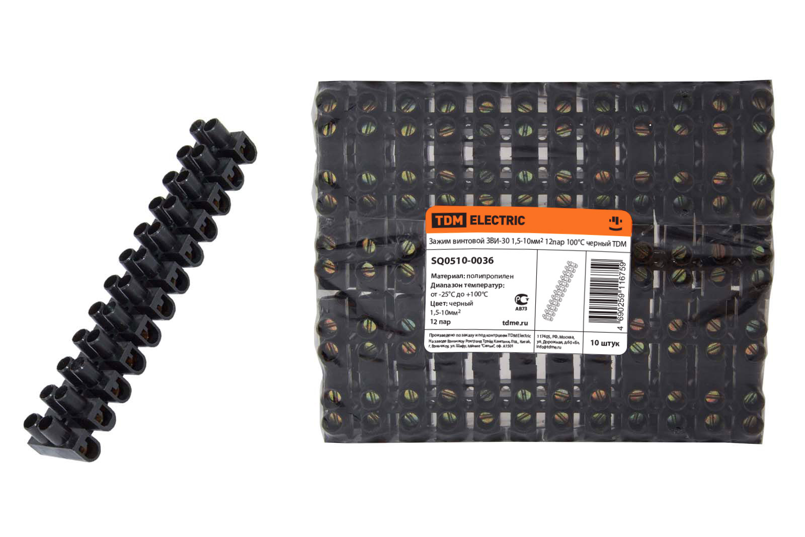 Колодка клеммная 30А 1.5-10мм² черный TDM ЗВИ-30 (10)