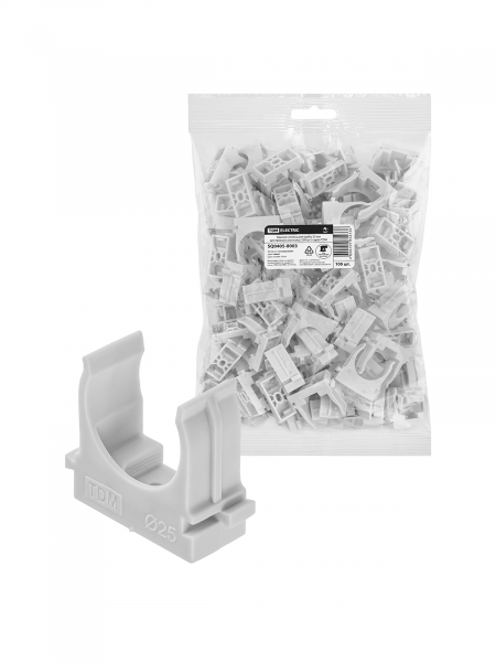 Крепёж-клипса для трубы Ø25мм серый прямой монтаж TDM (100/1000)