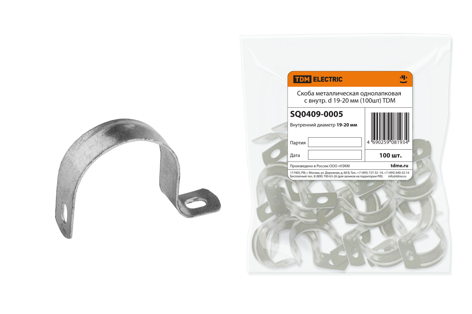 Скоба метал 1-лапковая d19-20мм TDM (100)