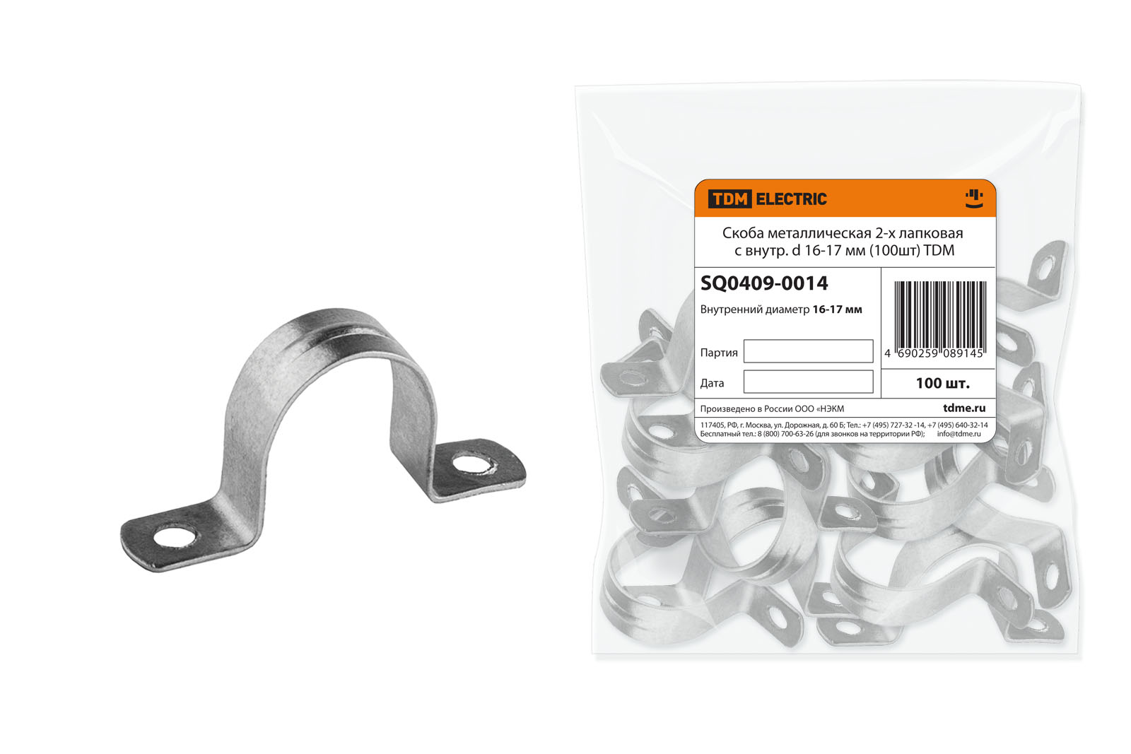 Скоба метал 2-лапковая d16-17мм TDM (100)