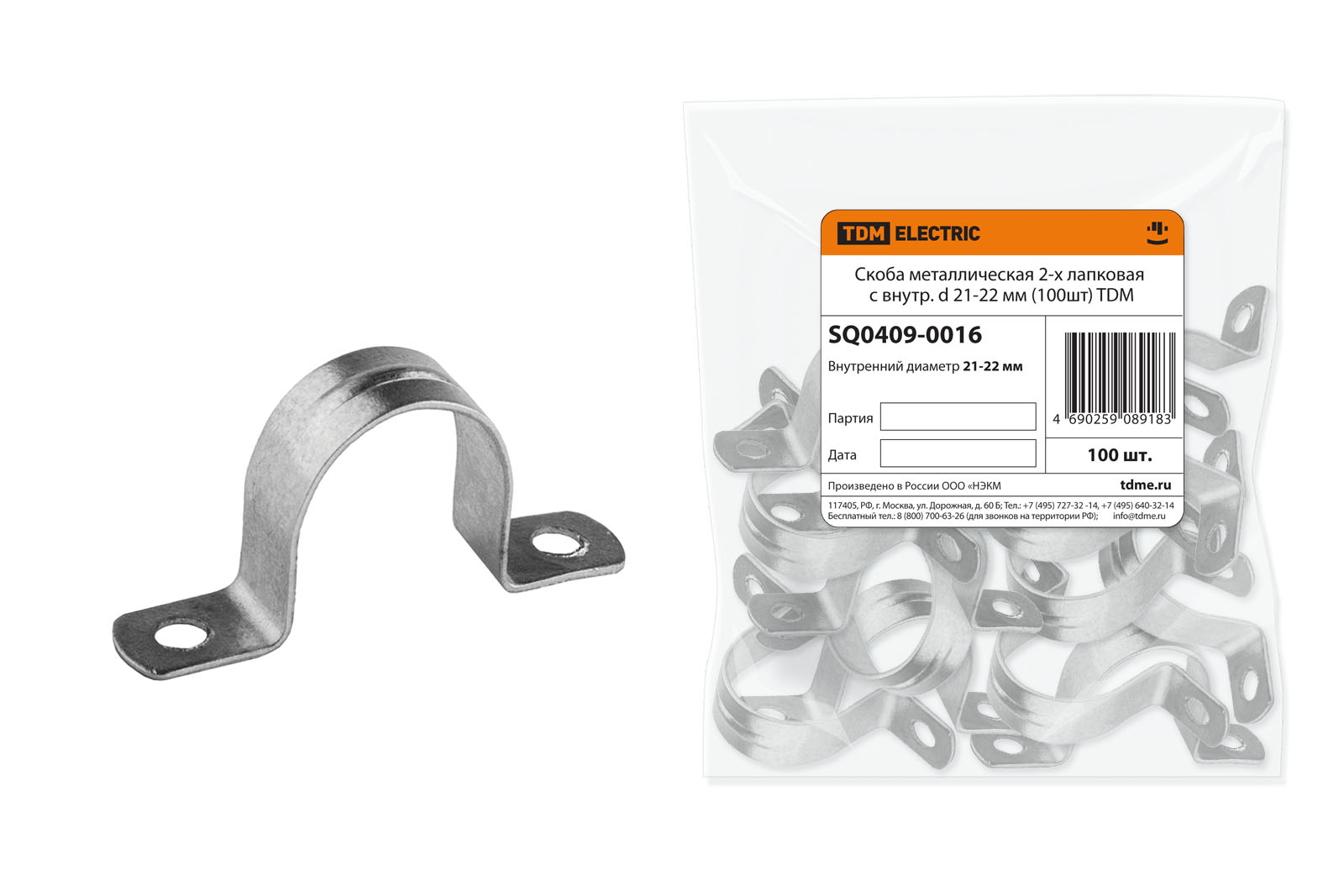 Скоба метал 2-лапковая d21-22мм TDM (100)
