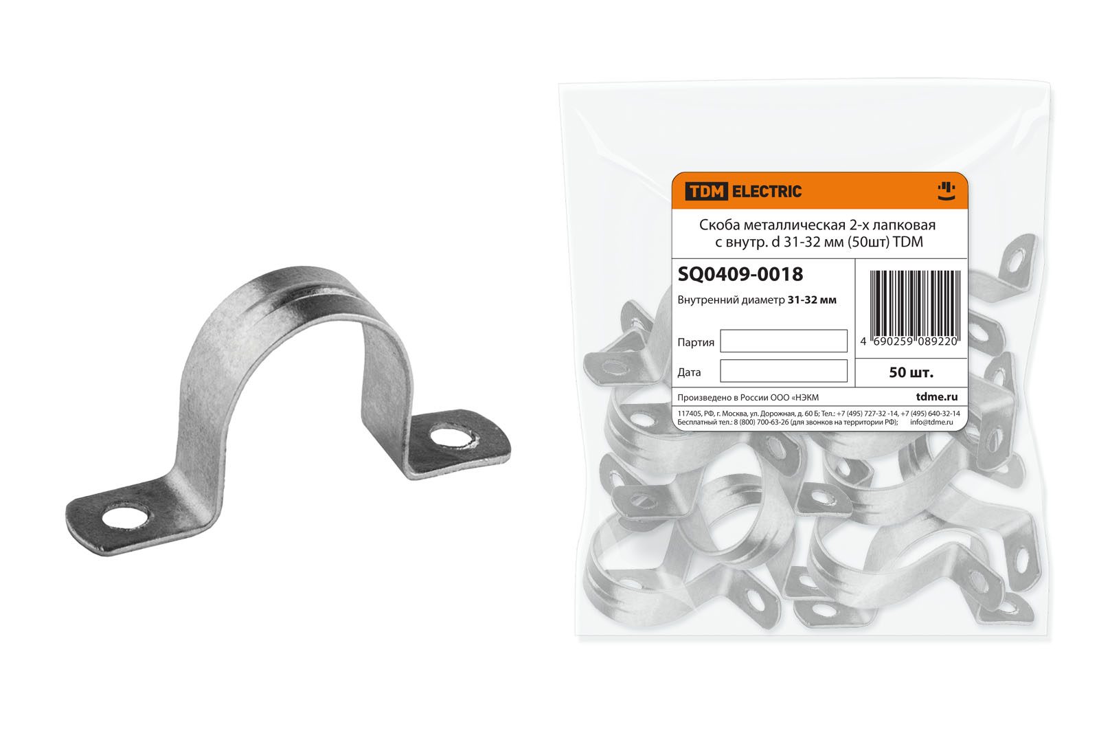 Скоба метал 2-лапковая d31-32мм TDM (50)