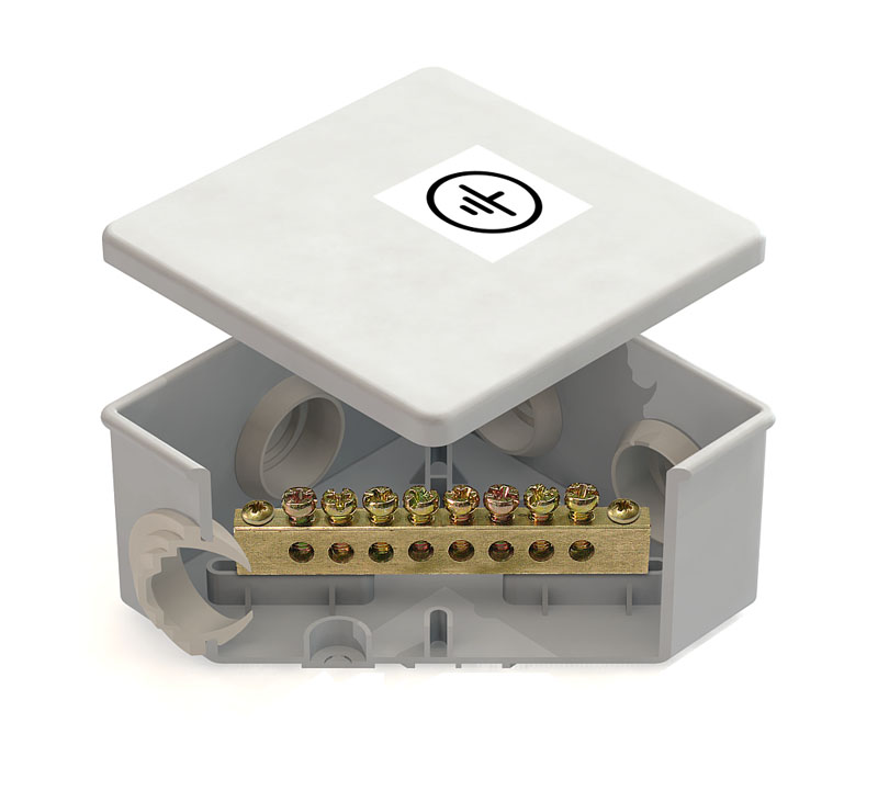 Коробка уравнивания потенциалов (КУП) 85х85х40мм, 6 гермовводов (60шт) GREENEL