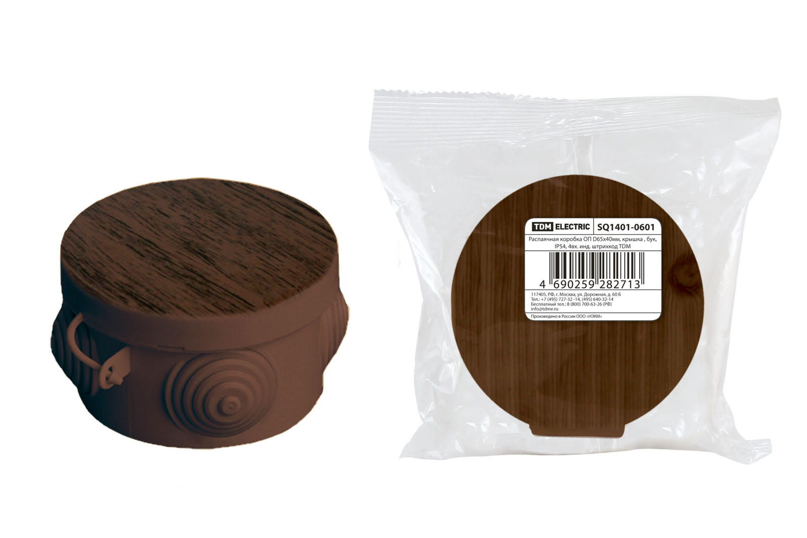 Коробка TDM D65х40мм бук IP54 4ввода штрихкод (60)