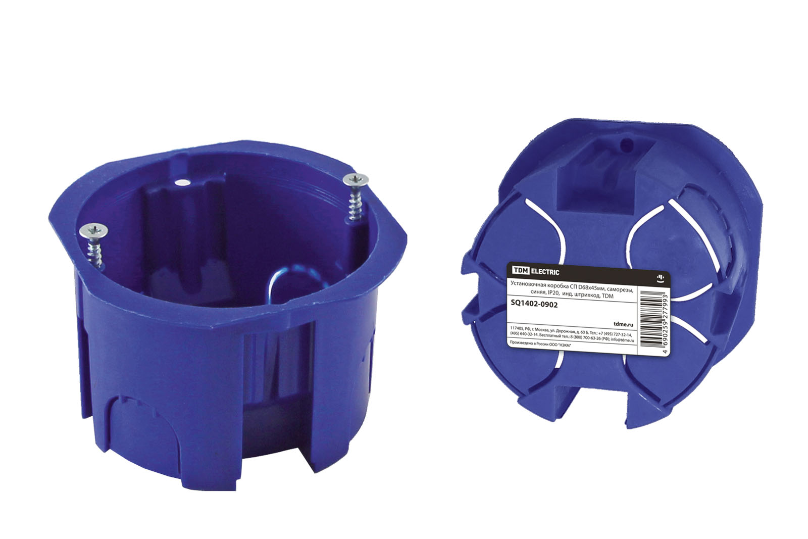 Подрозетник TDM d68х45мм саморезы синий (200)