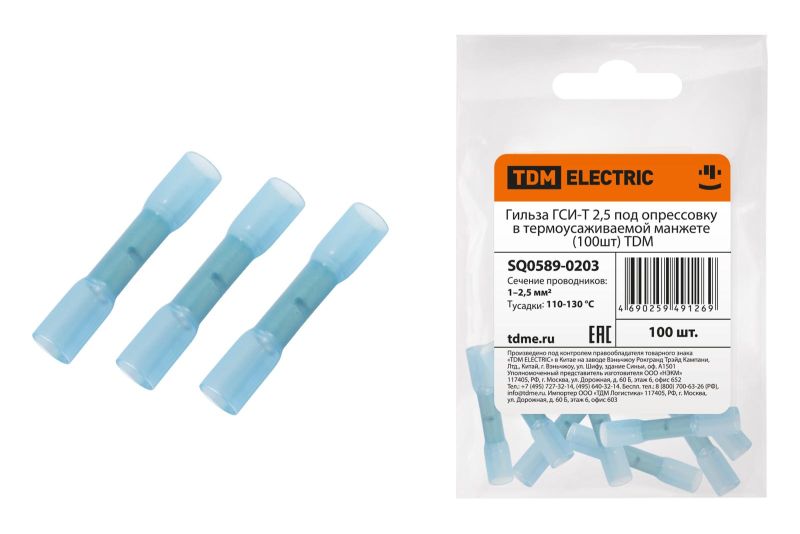 Гильза термоусаживаемая ГСИ-Т 2.5 под опресовку 100шт TDM (3)