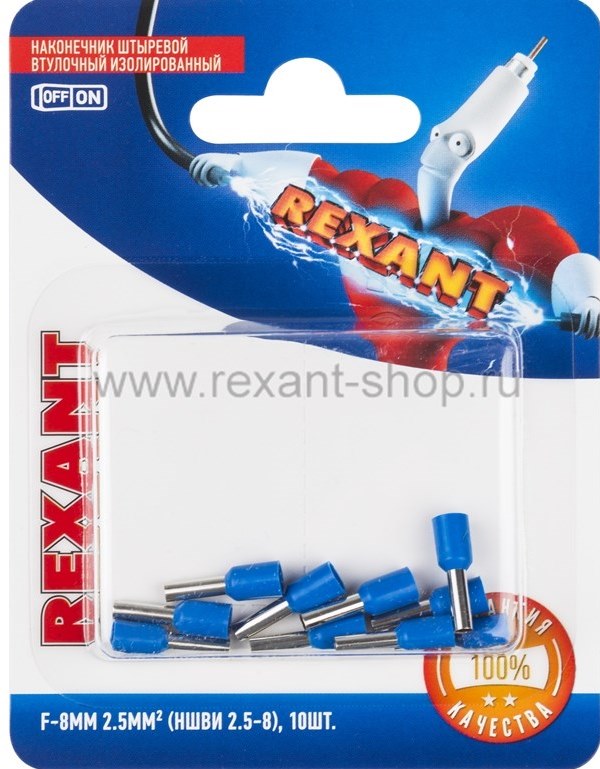 Наконечник штыревой втулочный изолированный 2.5мм²-8 Rexant НШВи синий 10шт (10)