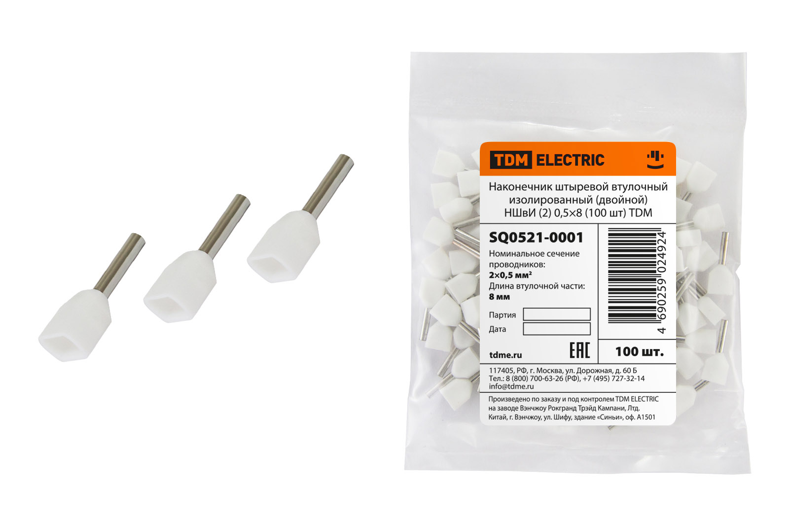 Наконечник штыревой втулочный изолированный двойной 0.5мм²-8 TDM НШвИ(2) 100шт (40)