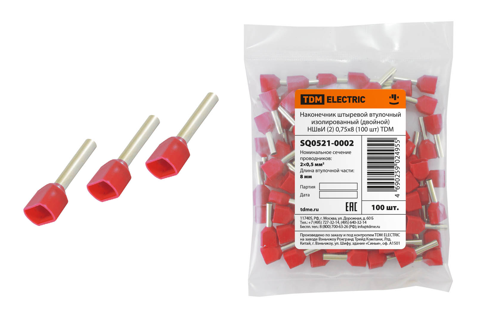 Наконечник штыревой втулочный изолированный двойной 0.75мм²-8 TDM НШвИ(2) 100шт (30)