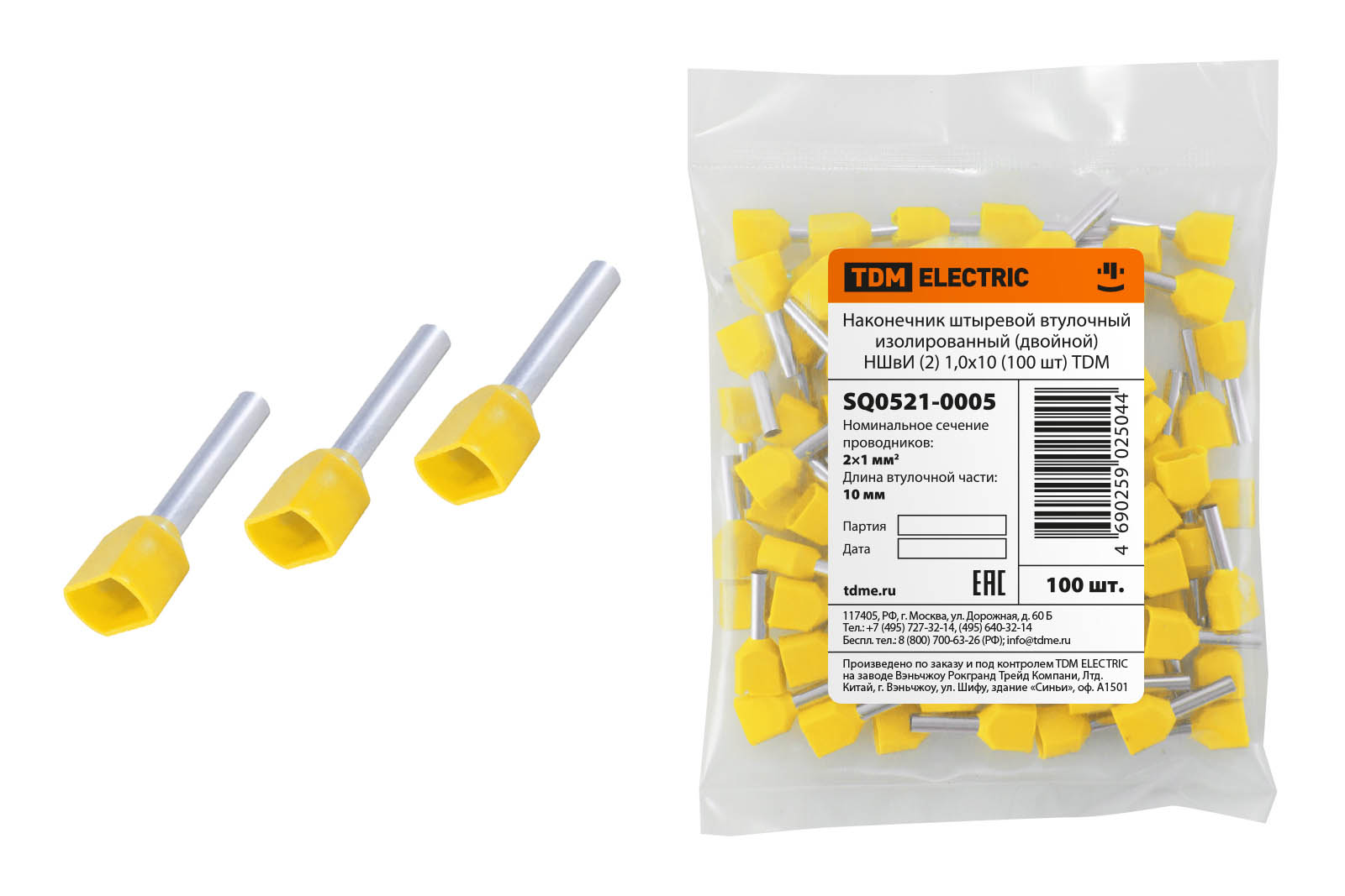 Наконечник штыревой втулочный изолированный двойной 1.0мм²х10 TDM НШвИ(2) 100шт (25)