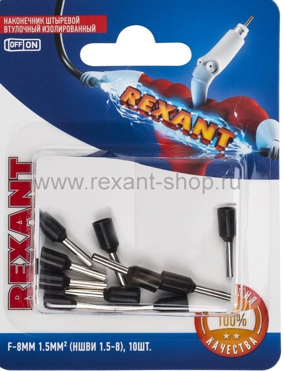 Наконечник штыревой втулочный изолированный F-8мм 1.5мм черный 10шт Rexant