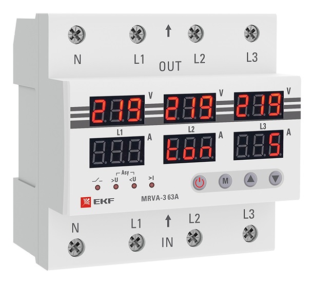 Реле напряжения и тока трехфазное 63A EKF MRVA-3
