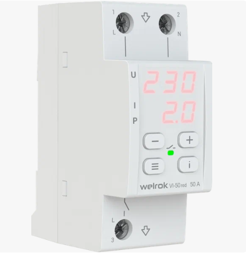 Реле напряжения и тока Welrok VI-50 red 50А 11000ВА