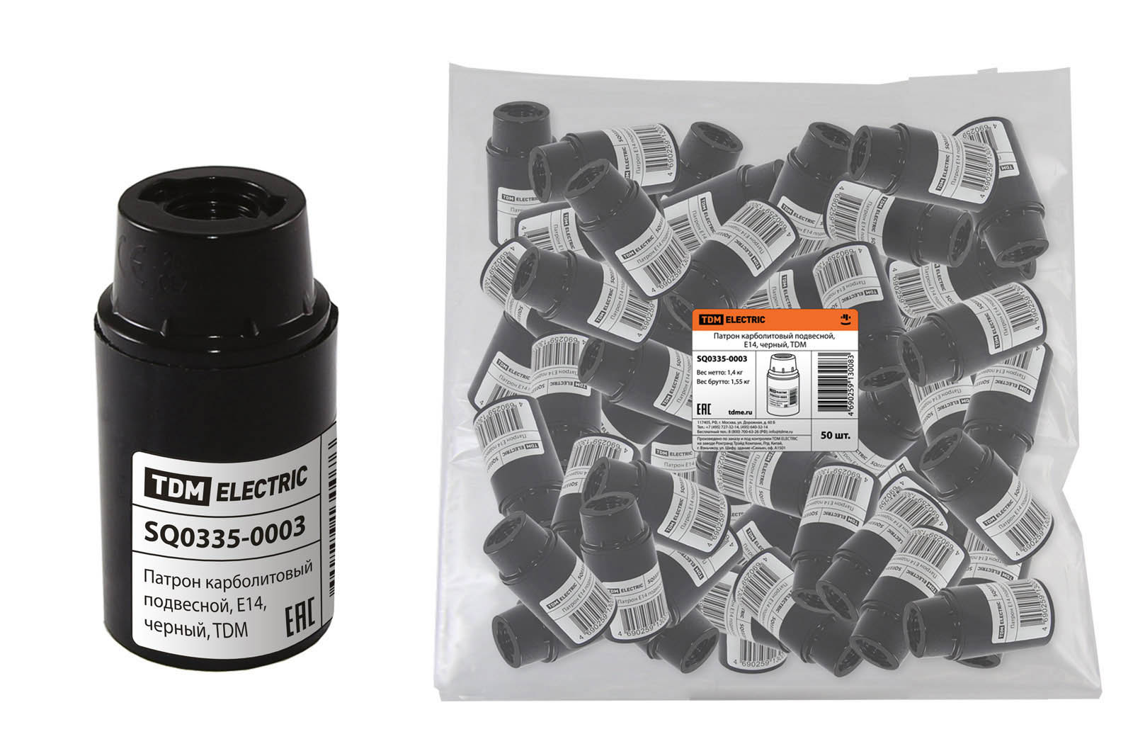 Патрон карболит подвесной Е14 TDM штрихкод (50)