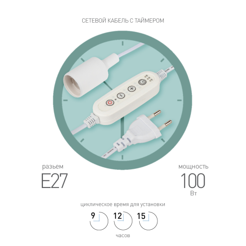 Провод 1хЕ27 Эра FITO-Time Holder с таймером 1,5м