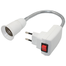 [APF7SWEAY] Ecola base Переходник вилка-патрон E27 гибкий 300мм c выключателем Белый